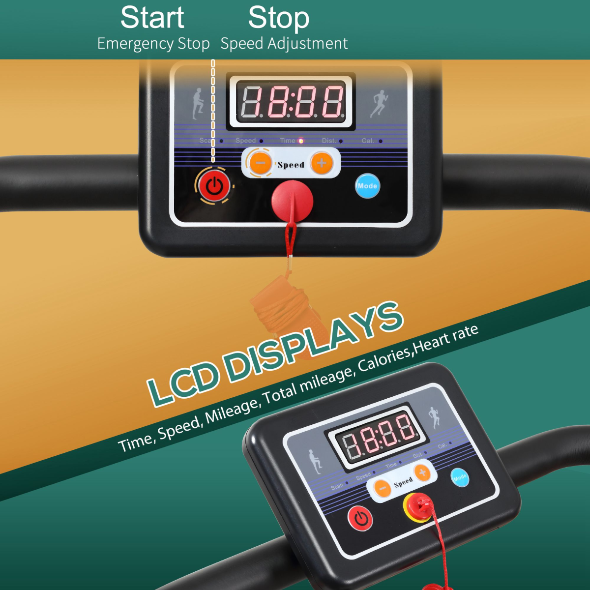 LCD SCREEN DISPLAY: The foldable treadmill build in LCD monitor display can keeps you informed of the time elapsed, distance, speed and calories burnt, allowing you to focus fully when working out.