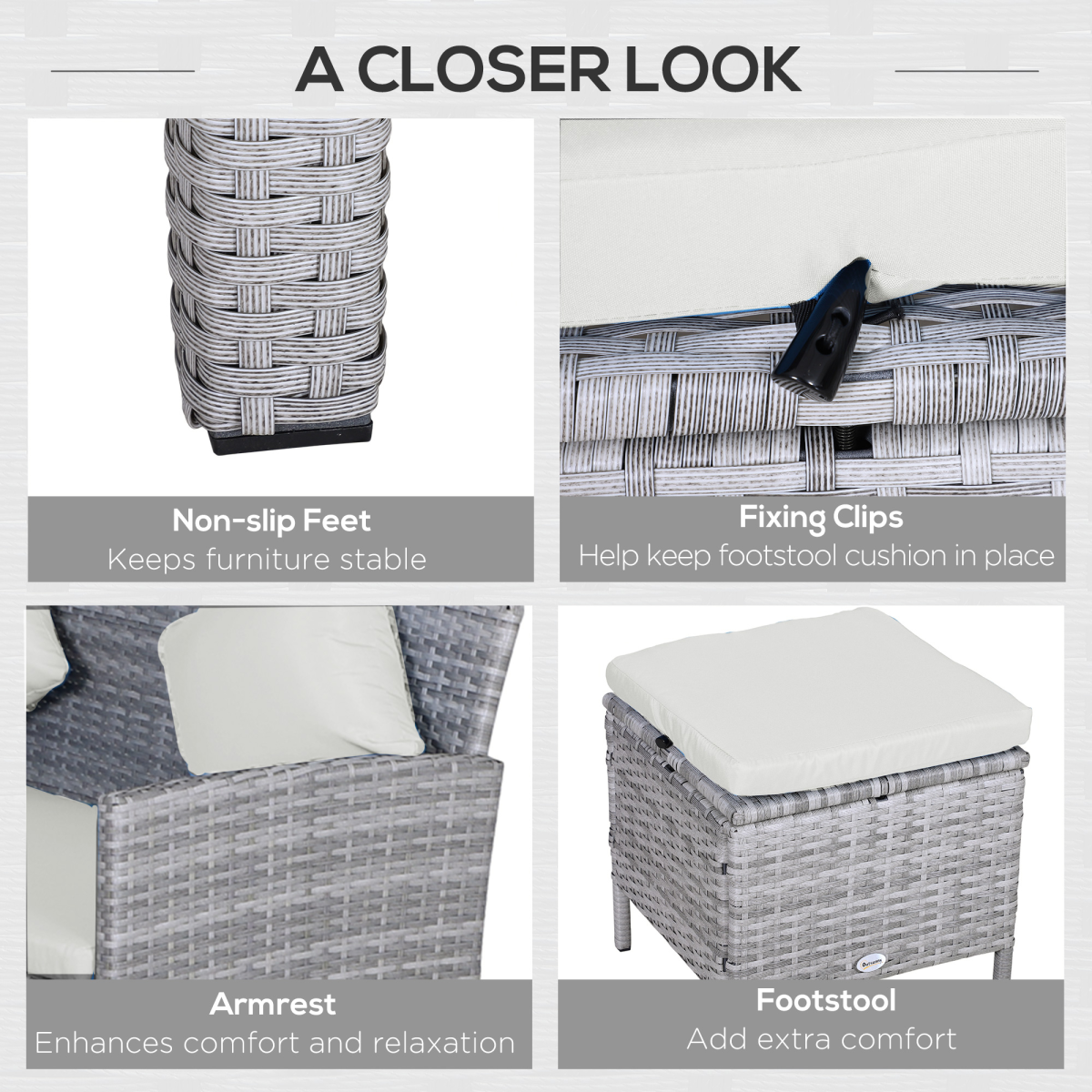 - Connecting buckle included to fix seat cushion on footstools