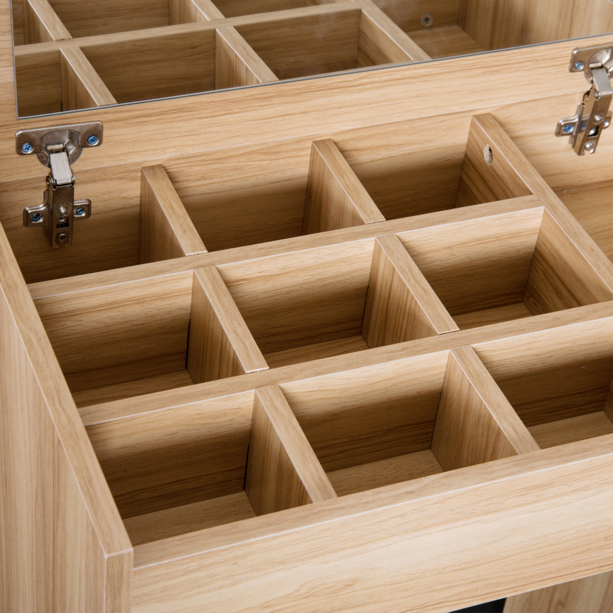 Flip-up mirror can be set to a 90-degree position for convenient making up and dressing use