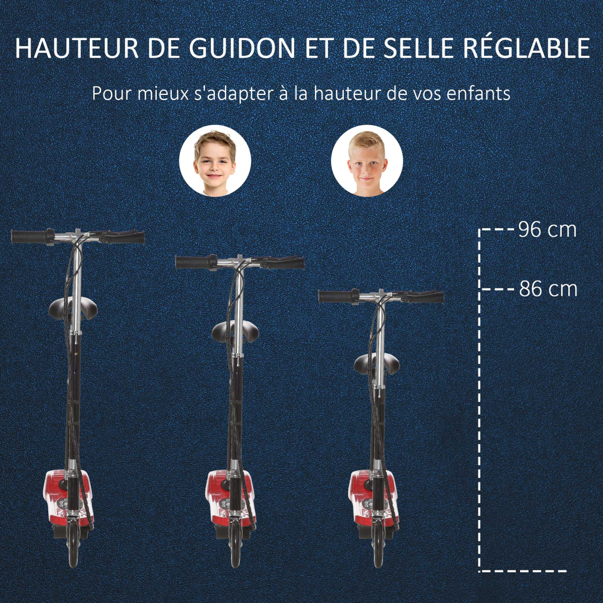 OUTSTANDING PERFORMANCE: Contains two batteries, by charging 6-8 hours, the fast scooter can drive smoothly for 6-8km. The maximum speed can be reached 10km/h. Applicable age: 7-12 years oldADJUSTABLE HEIGHT: Designed as height-adjustable handle, can correctly position your kids' height. The powered scooter is equipped with a height adjustable seat, providing proper balance and comfort control while ridingFOLDABLE DESIGN: Quick folding mechanism allows it to be folded and unfolded quickly. Carry the kids scooter on public transportation, store it in your trunk of the car easily and any destination you desire effortlessly, occupying little space and suitable for travelSAFE BRAKING: Hand-activated rear brake provides optimum braking performance. Which automatically disengages power whenever you brake. The scooters for kids are equipped with 15cm solid PU tires, say goodbye to flat tires and maintenanceOverall Dimension: 76L x 38W x 86-96Hcm, Folded Size: 75L x 13W x 32Hcm