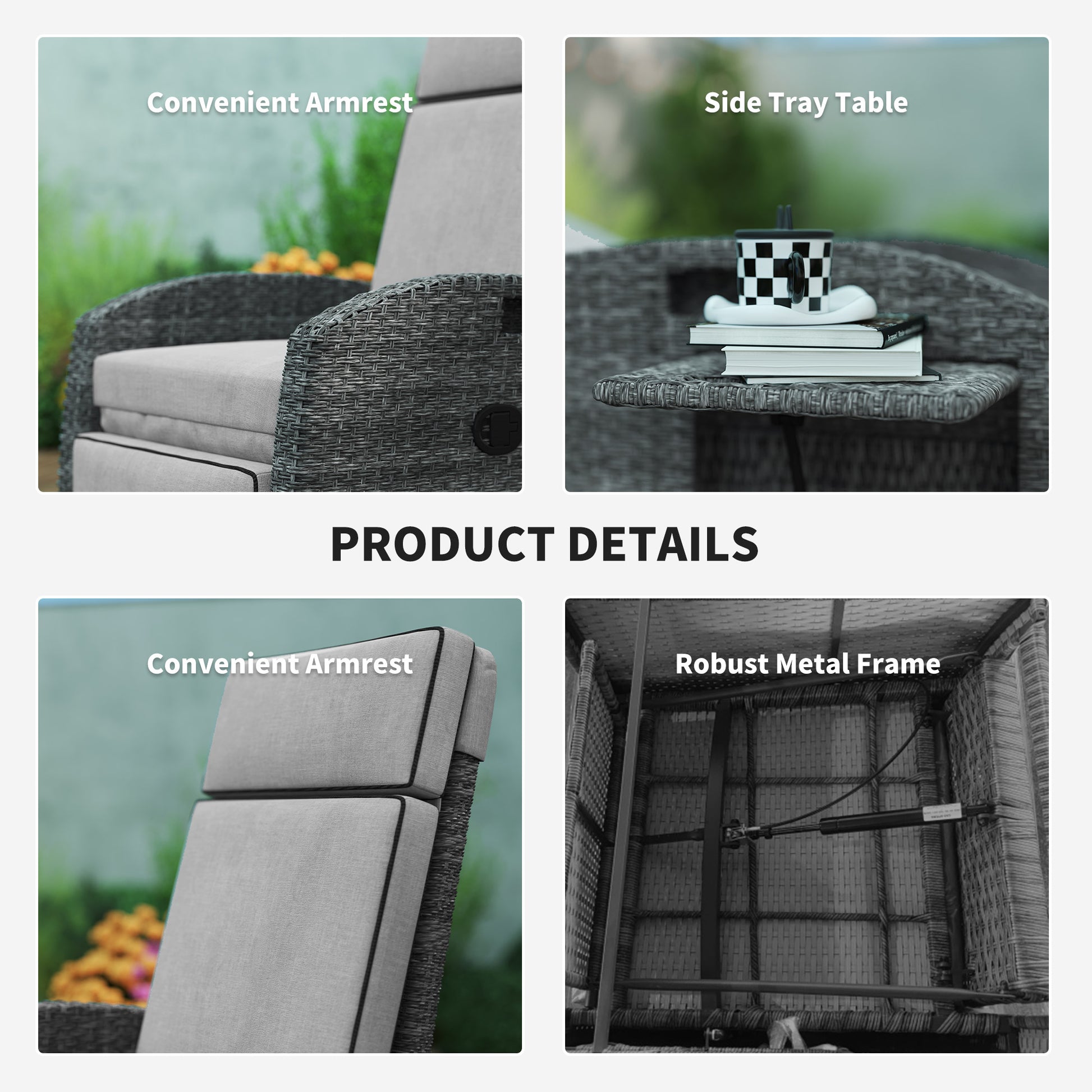Outdoor Recliner Chair w/ Cushion Rattan Reclining Lounge Chair, Grey