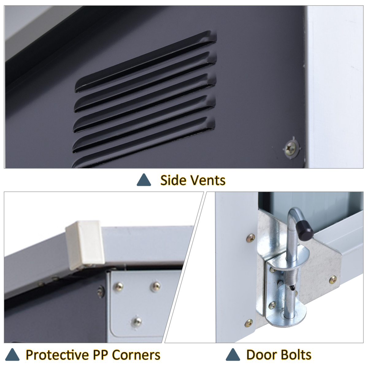 - Corrugated steel structure is solid, with a weather-resistant coating for outdoor protection