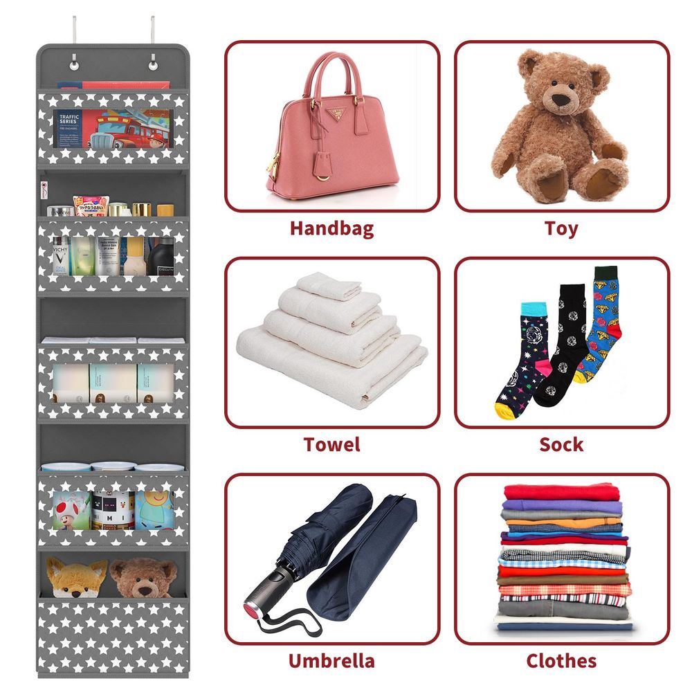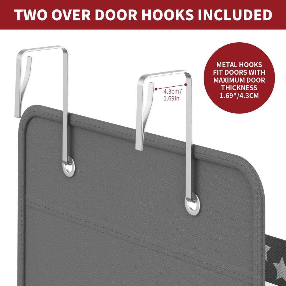 EASY INSTALLATION: Simply stuff the cardboard plates into each pocket and hook it to the door to create vertical storage space. This set includes two metal hooks, side and base plates for the bottom of all pockets to give them a strong enough shape and to aid in the storage of items. Over the door hanging storage can be hung not only on doors and shelves, but also on the wall with nails or through the wear-resistant holes in the hooks.